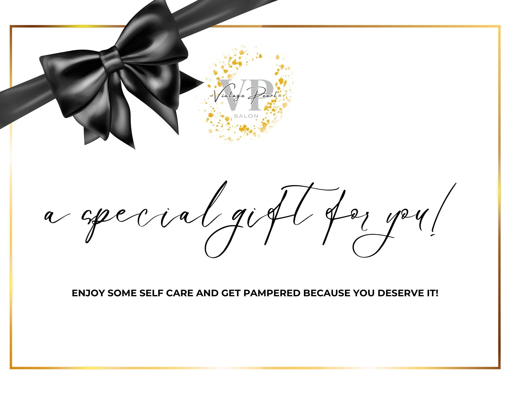 Looking for the perfect gift for a special someone? Our gift cards make the perfect present for any hair, permanent jewelry, or skin treatment! With a range of services and products, they can choose how they want to look and feel their best with a Vintage Pearl gift card!